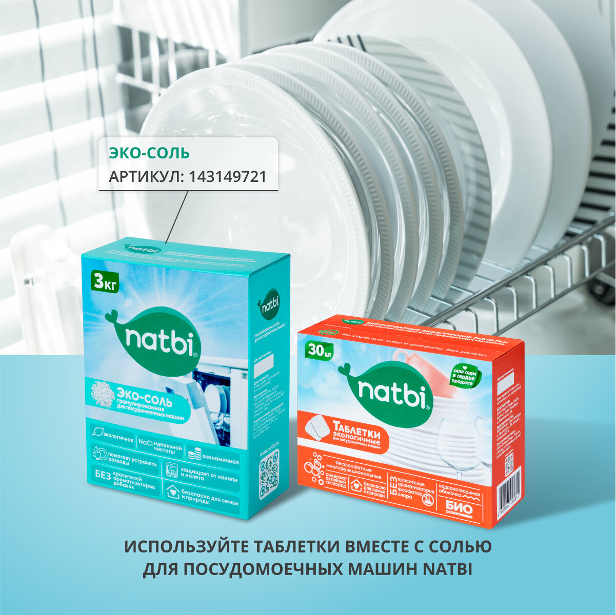 Natbi Бесфосфатные Эко Таблетки для посудомоечной машины 30 штук информация: