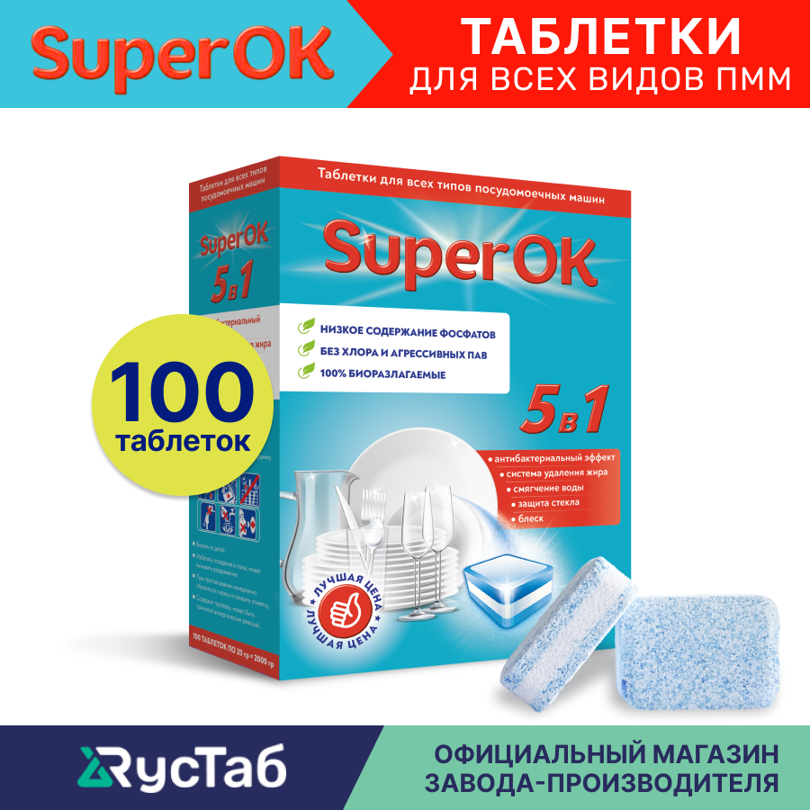 Таблетки для посудомоечной машины SuperOK 5в1 / 100 шт. информация: