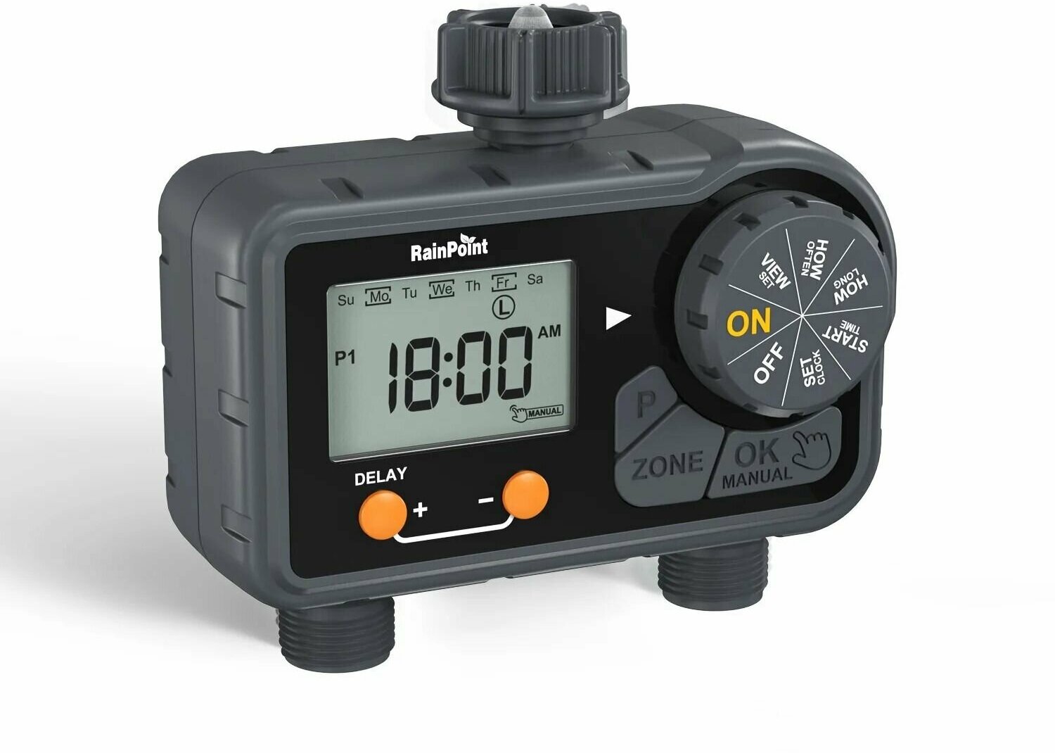 Отзывы на Электронный таймер полива с клапаном для подачи воды Rainpoint 2C с ЖК Дисплеем, Двухканальный