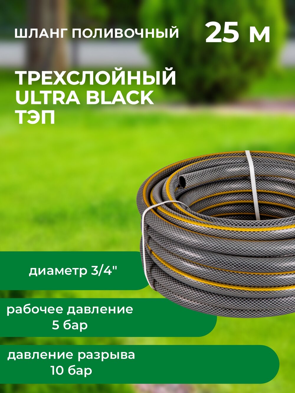 10 цен на Шланг поливочный ULTRA BLACK (ТЭП) армированный, с прозрачным наружним слоем, 3/4", 25 м, давление 5-10 бар. В придачу (1 бухта 25м)
