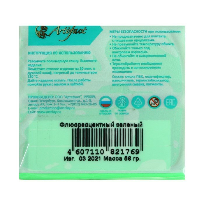 Отзывы на Artifact Пластика - полимерная глина 56г флуоресцентный Зеленый