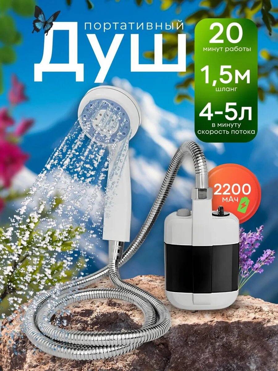 10 цен на Переносной походный душ с аккумулятором для сада, дачи, похода