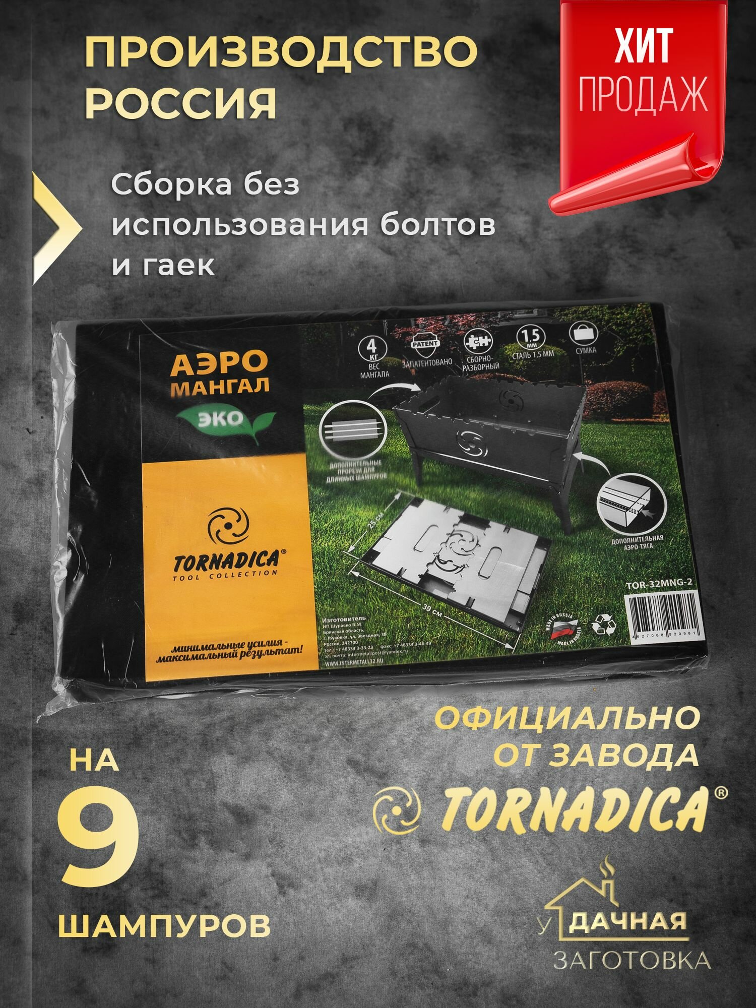 Мангал Tornadic TOR-32MN1, нержавеющая сталь 2мм, 39х23х31,+ сумка