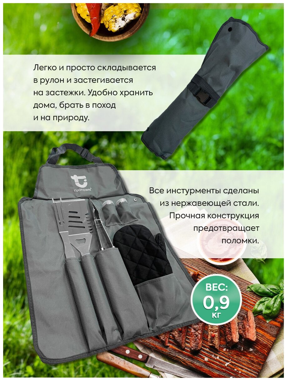 10 цен на Набор для барбекю кухонный, для гриля, подарок мужчине, гриль походный, фартук сумка 7 предметов