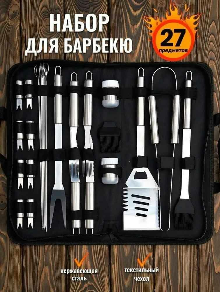 10 цен на Набор инструментов для барбекю в чехле 27 предметов / Набор для пикника гриля шашлыка, подарочный от Shark-Shop