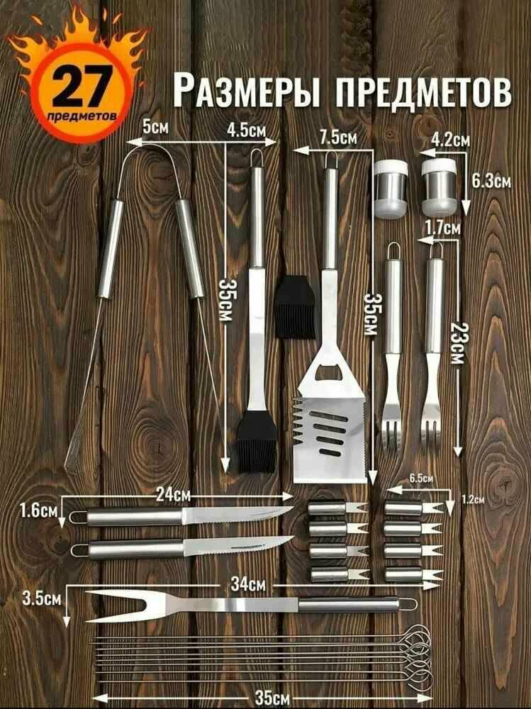 Набор инструментов для барбекю в чехле 27 предметов / Набор для пикника гриля шашлыка, подарочный от Shark-Shop информация:
