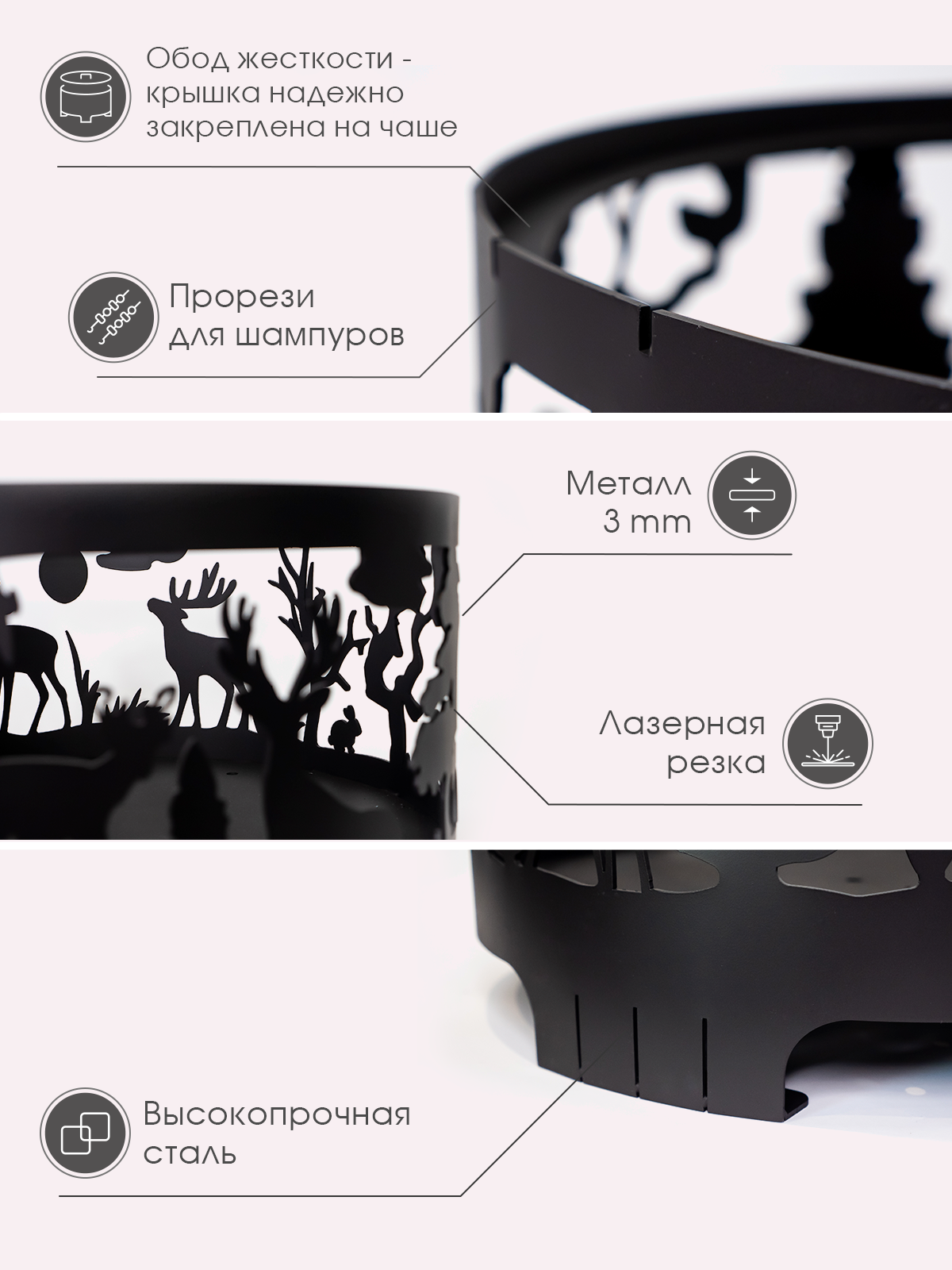 Костровая чаша Афины 62х62 см с крышкой искрогасителем / Чаша для костра FIRE-HOUSE