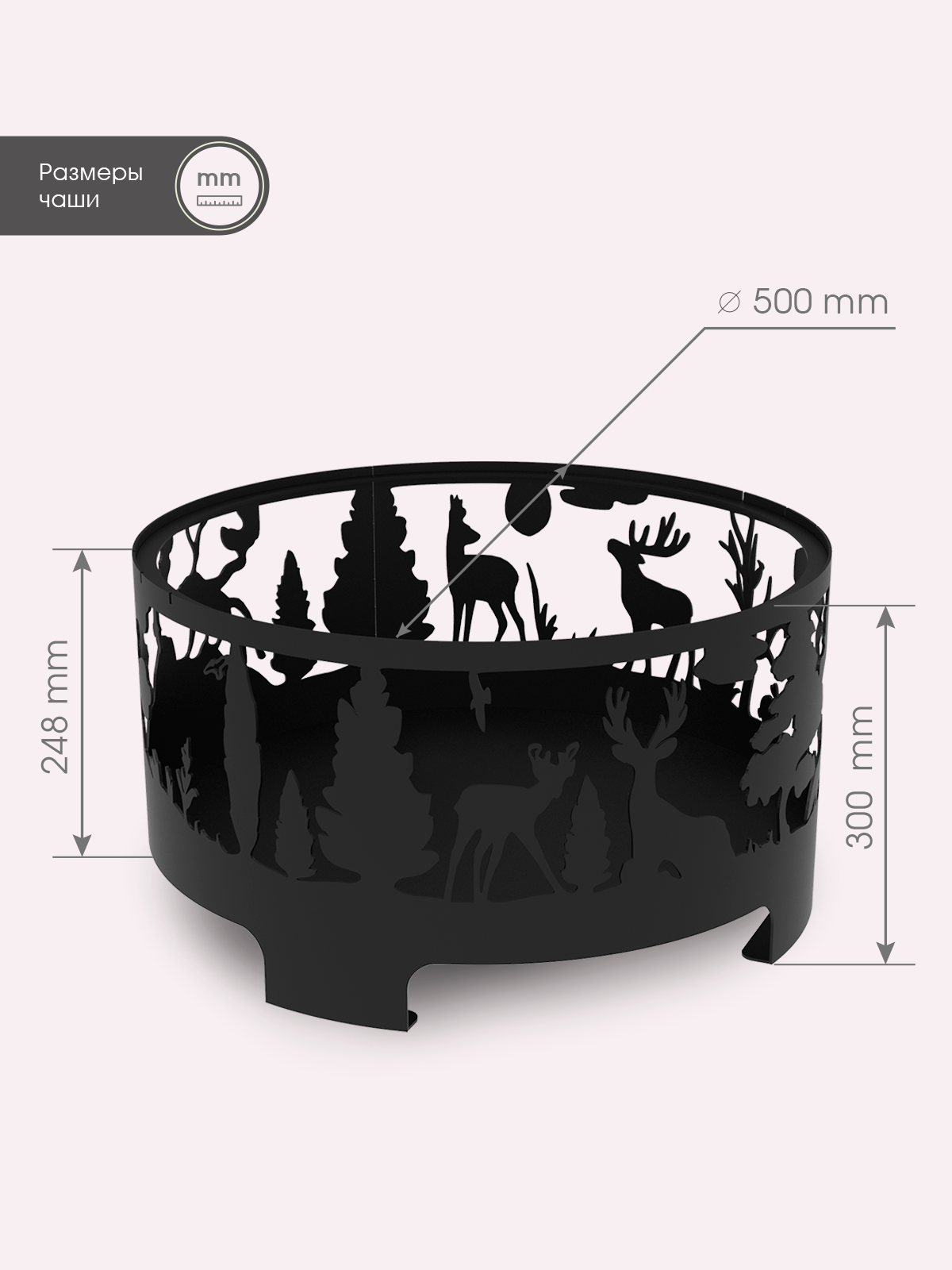 Костровая чаша Олени диаметр 50 см/ Чаша для костра FIRE-HOUSE