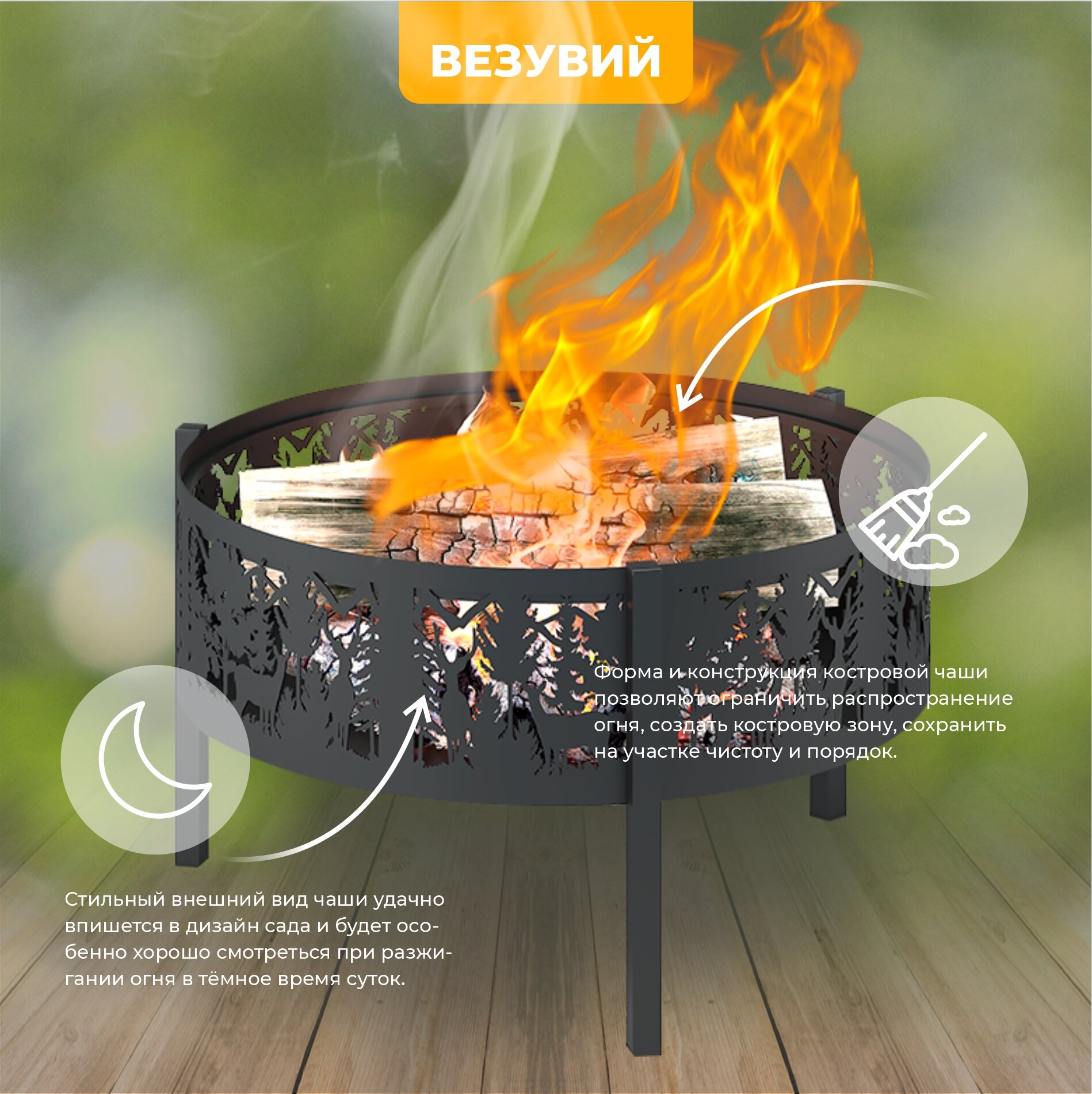 Костровая чаша Ежик в тумане диаметр 50 см с зольником / Чаша для костра FIRE-HOUSE