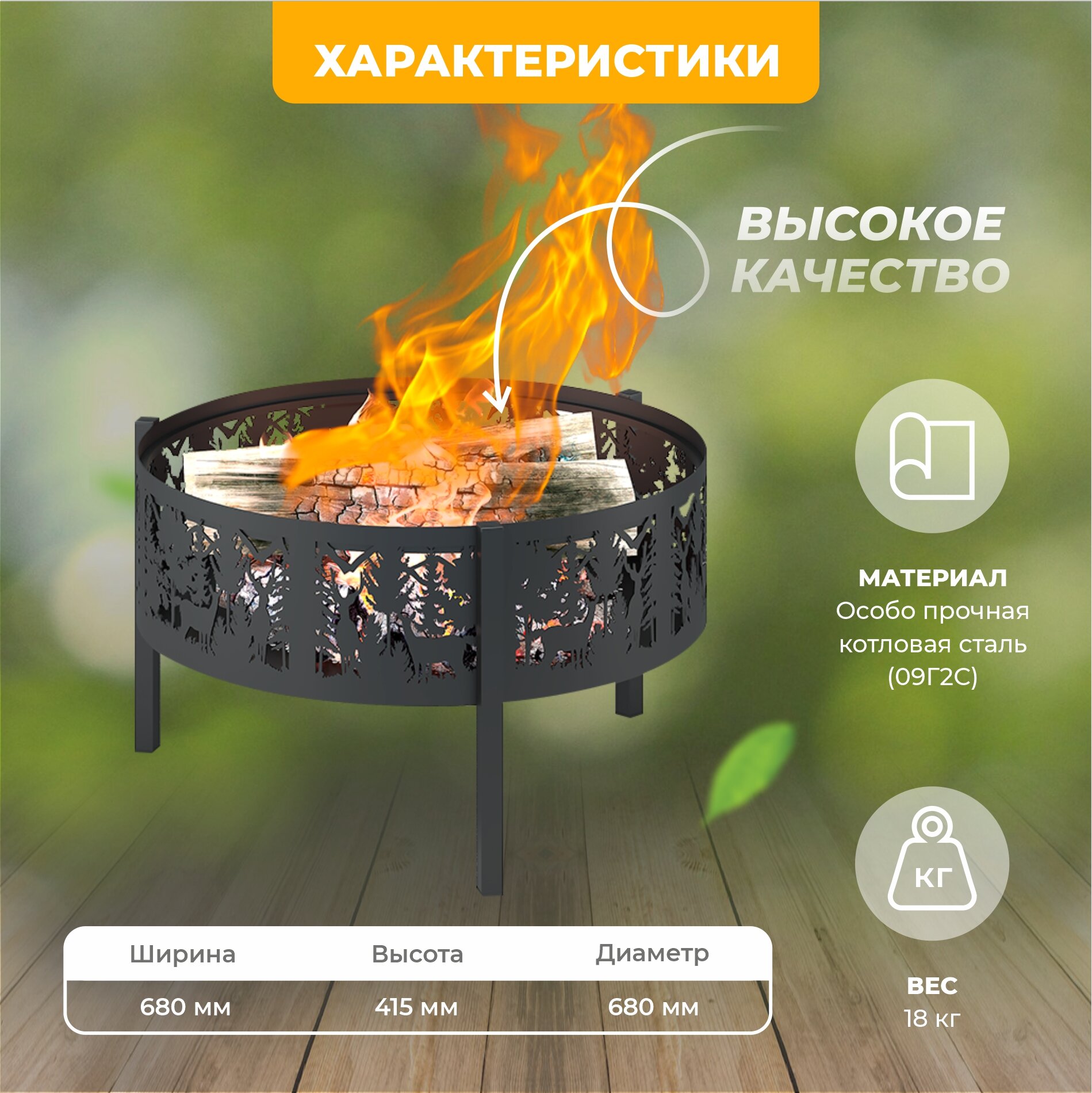 Костровая чаша Олени диаметр 50 см/ Чаша для костра FIRE-HOUSE