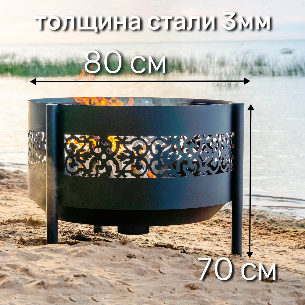 Костровая чаша Ажурная диаметр 80 см с зольником, на трубчатых ножках / Чаша для костра FIRE-HOUSE информация:
