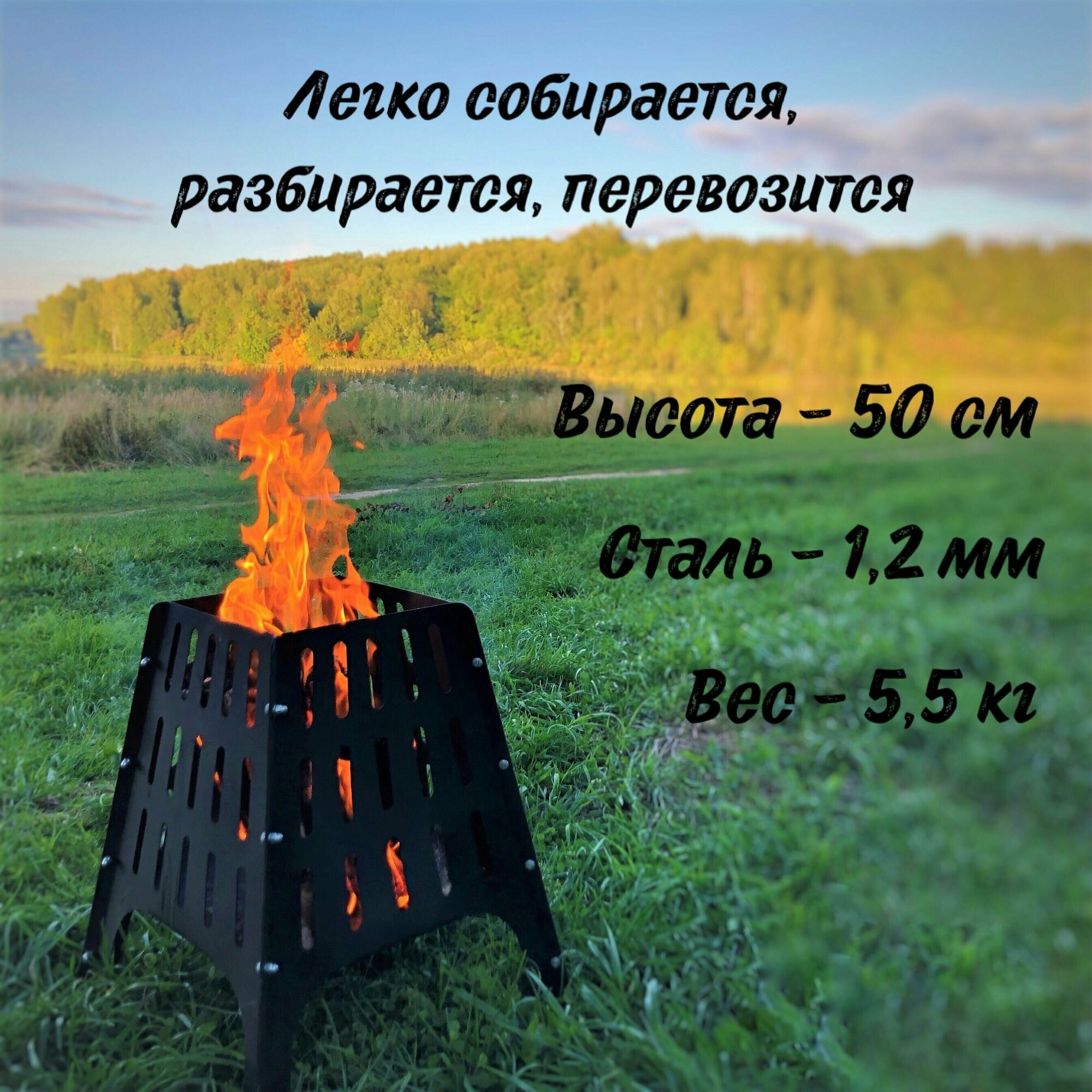 Костровая чаша (очаг, кострище) стальная высотой 50 см, четырехугольная информация: