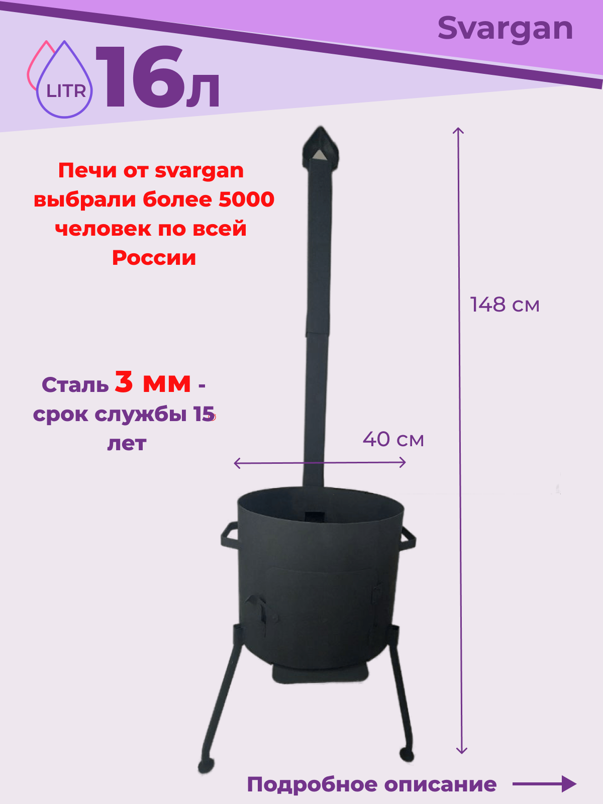 Печь (учаг) для казана 16 литров с трубой и дверцей из стали 3 ММ информация: