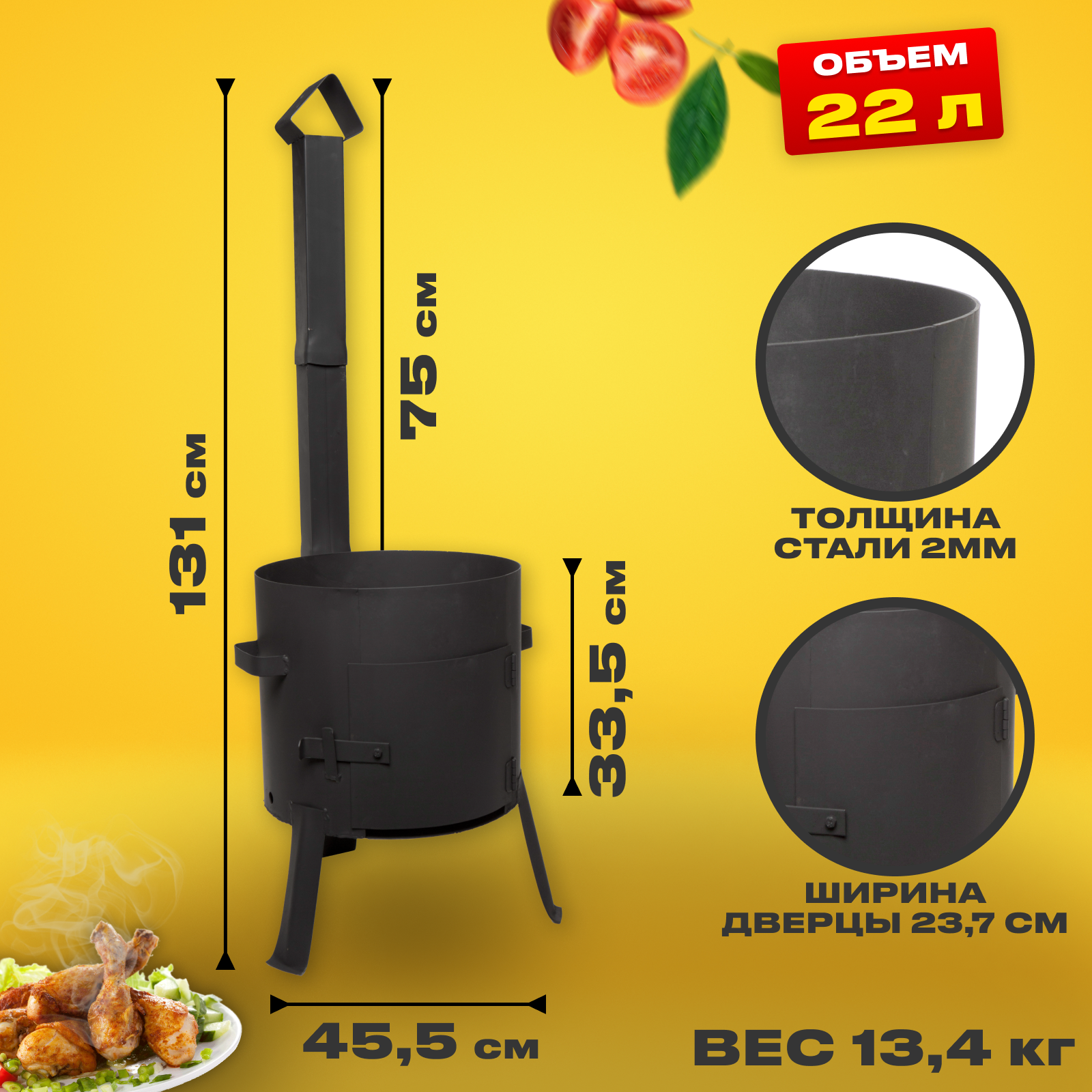 Печь под казан 22 л. с дверцей и трубой сталь 2 мм. информация:
