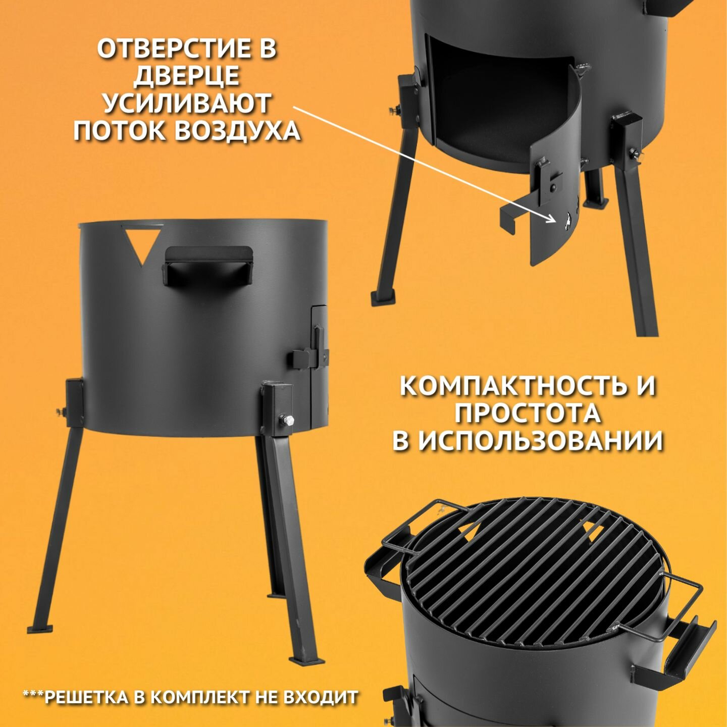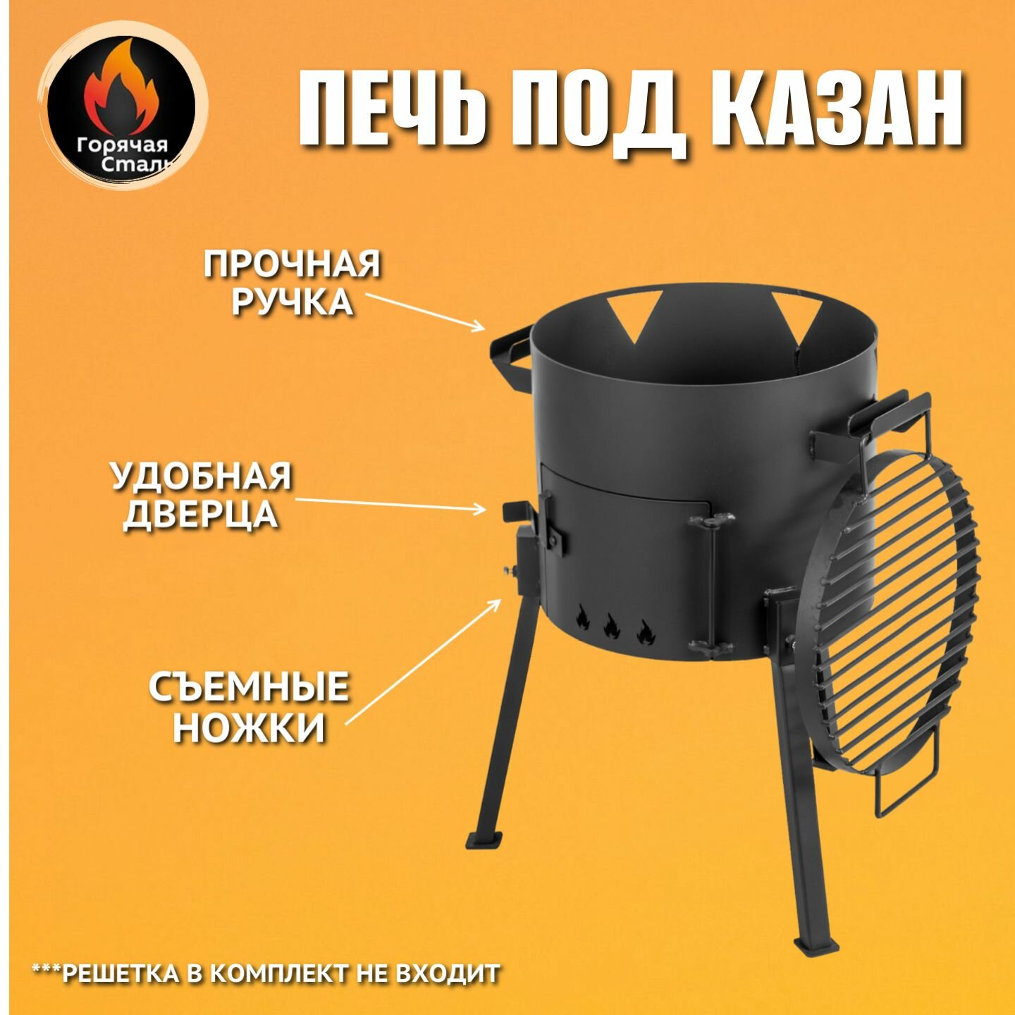 Печь для казана объемом 10 литров с ручками, съемные ножки, зольник