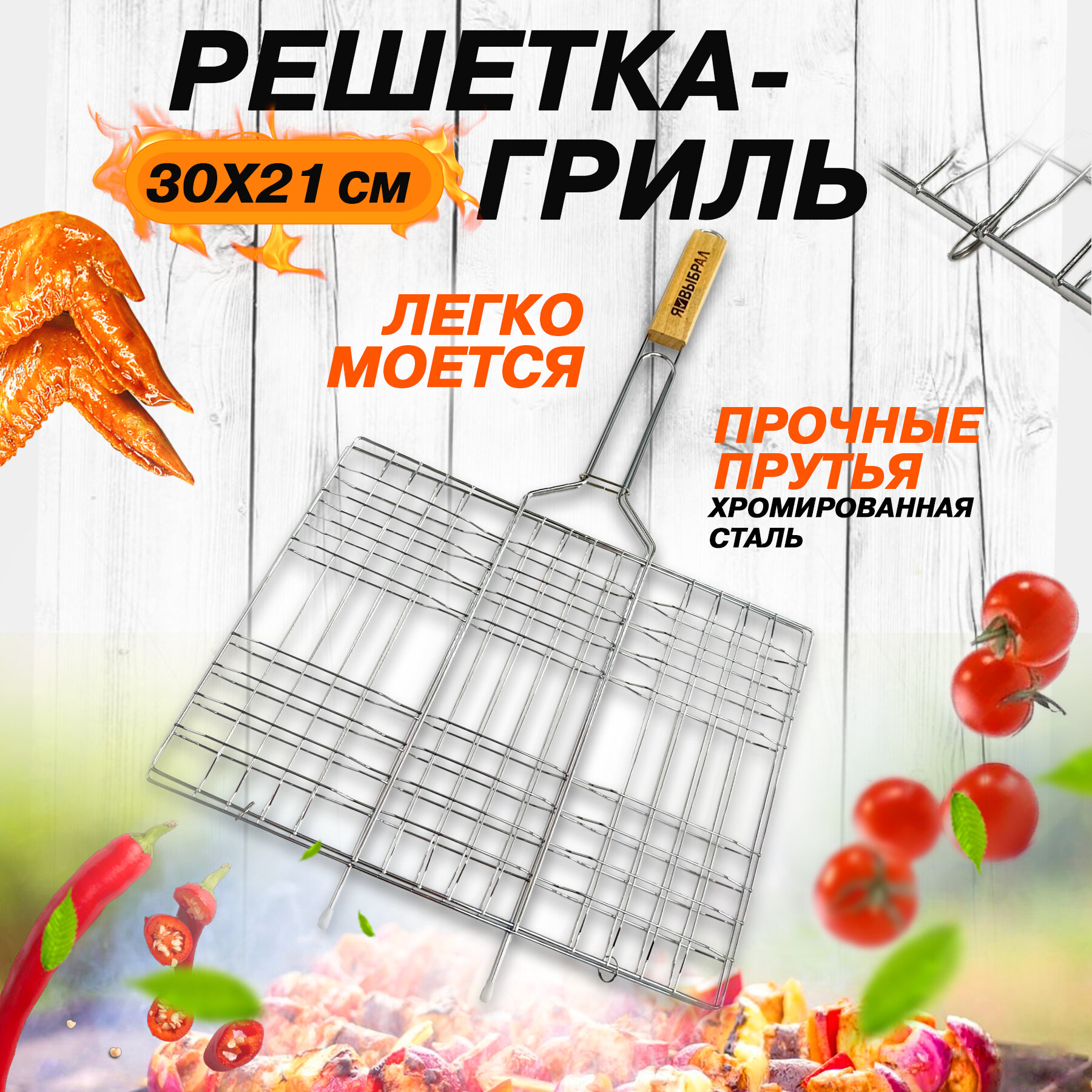 10 цен на Решетка для гриля и барбекю на мангал плоская из хромированной стали для мяса, овощей, рыбы 30х21 см