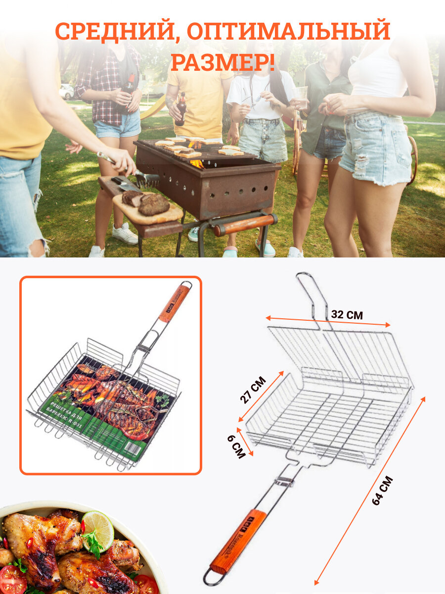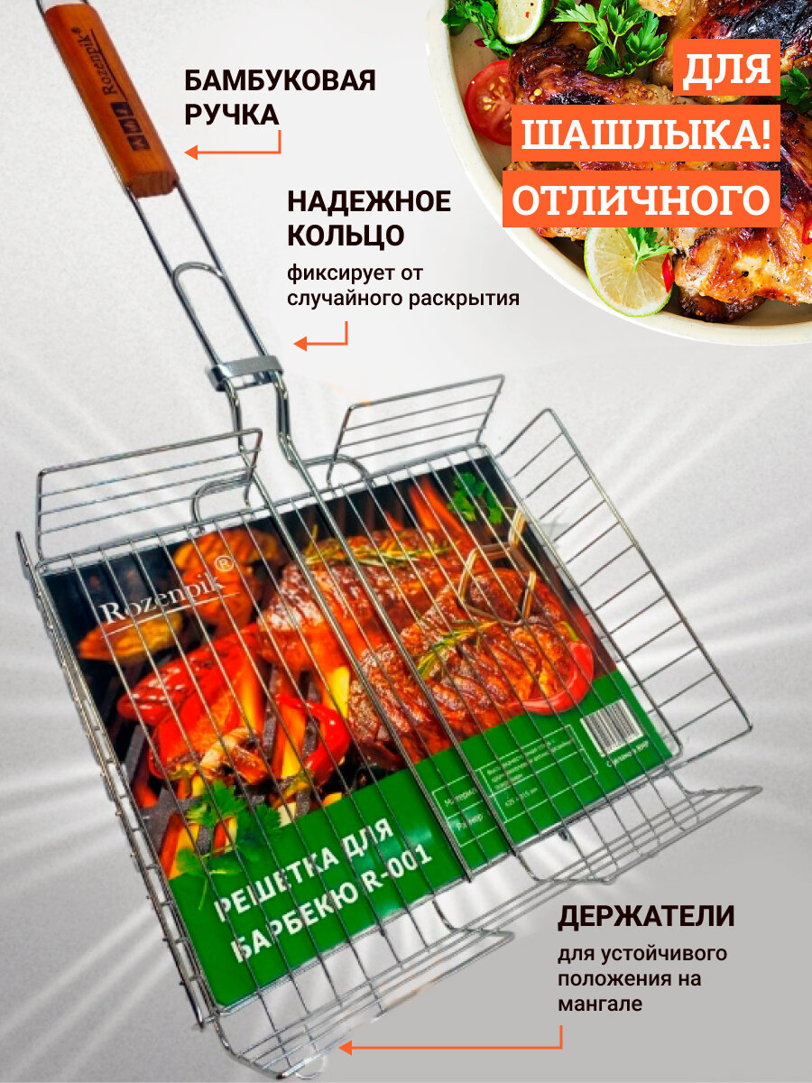 10 цен на Решетка для гриля на мангал для жарки овощей и мяса R-001