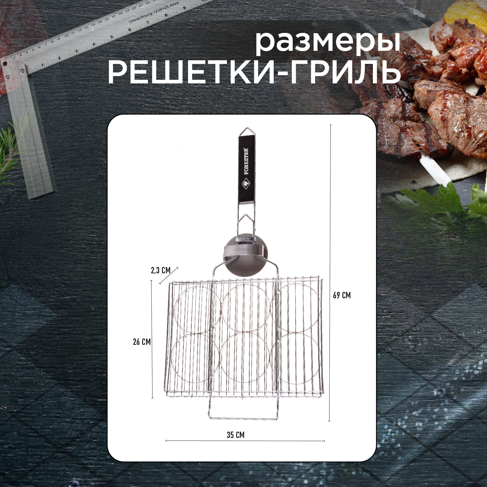 Решетка-гриль Forester с 6 съемными формочками и бургер-прессом, 26*35 см информация: