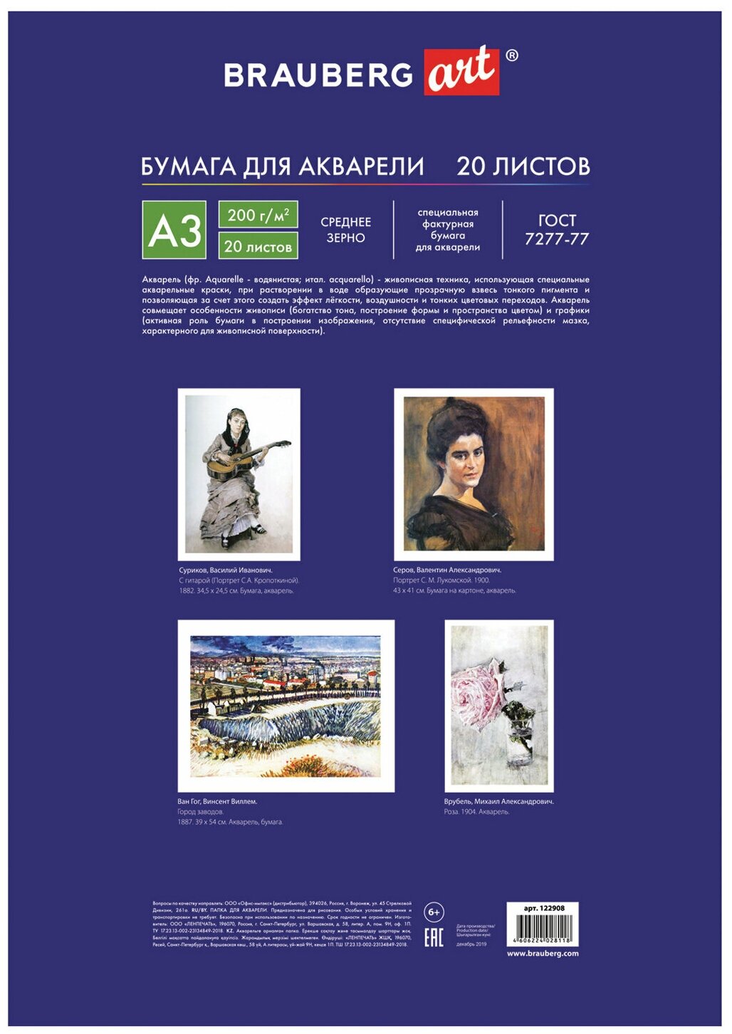 Brauberg Папка для акварели А3, 20л, 200 г/м2, 297х420 мм, Долина цв., 122908 информация: