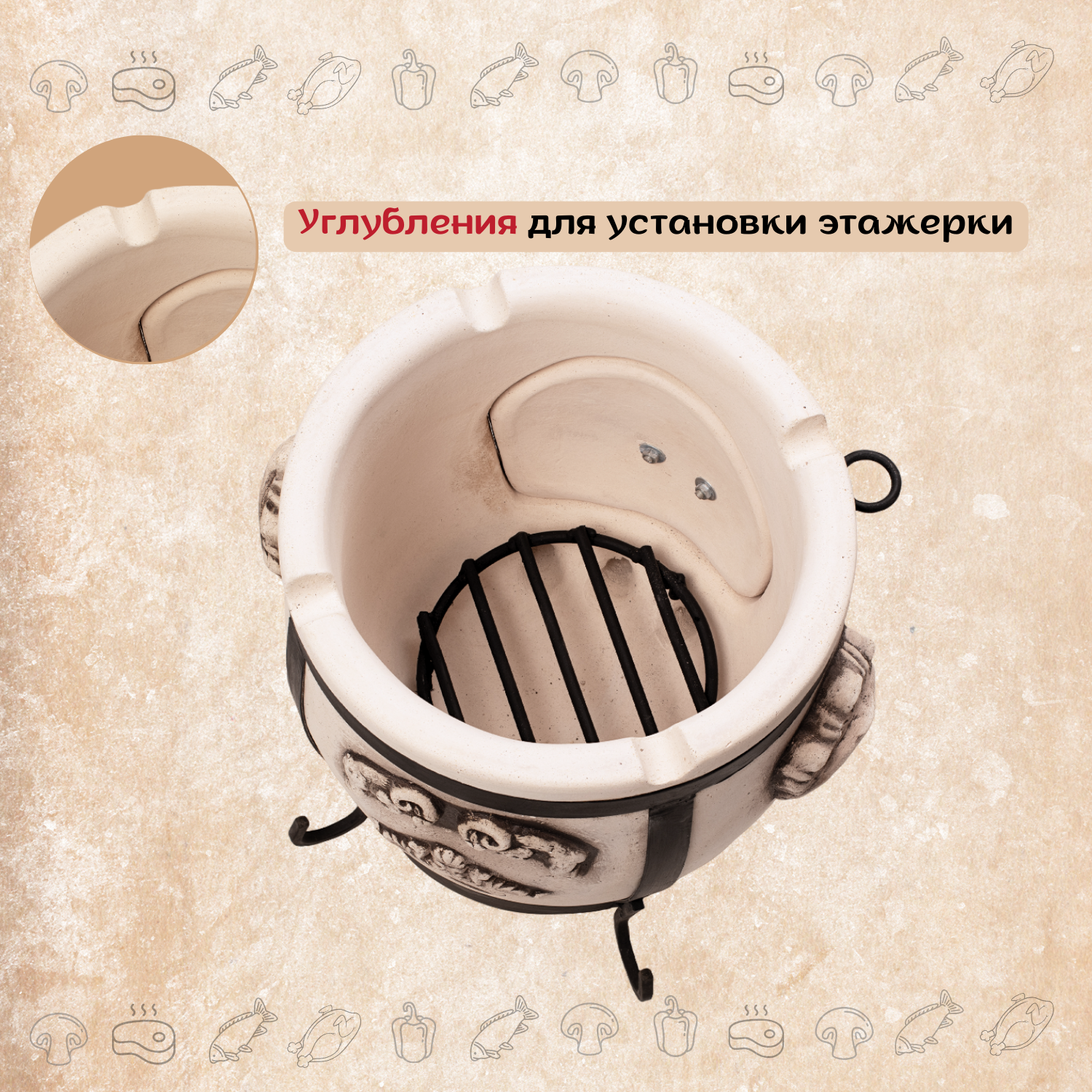 Аполлон с откидной крышкой - Комплект "Dacha" - тандыр для дачи средний - 50 л, Технокерамика.