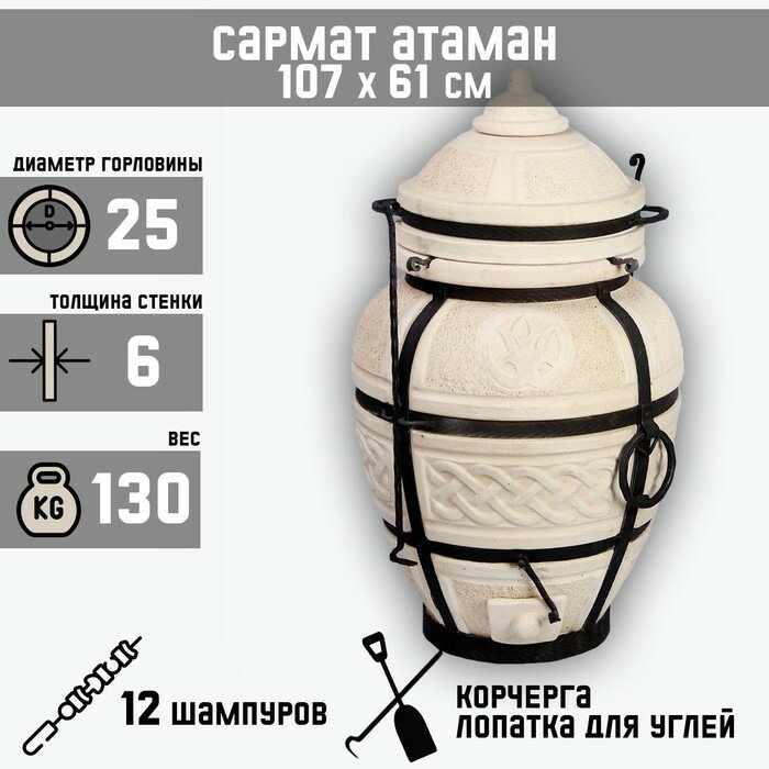 Тандыр "Сармат Атаман" h-107 см, d-61, 130 кг, 12 шампуров, кочерга, совок информация: