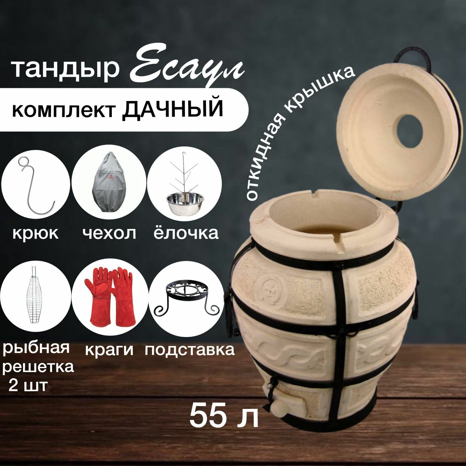 Тандыр для дачи большой - Amfora Есаул с откидной крышкой в комплекте "Дачный" информация: