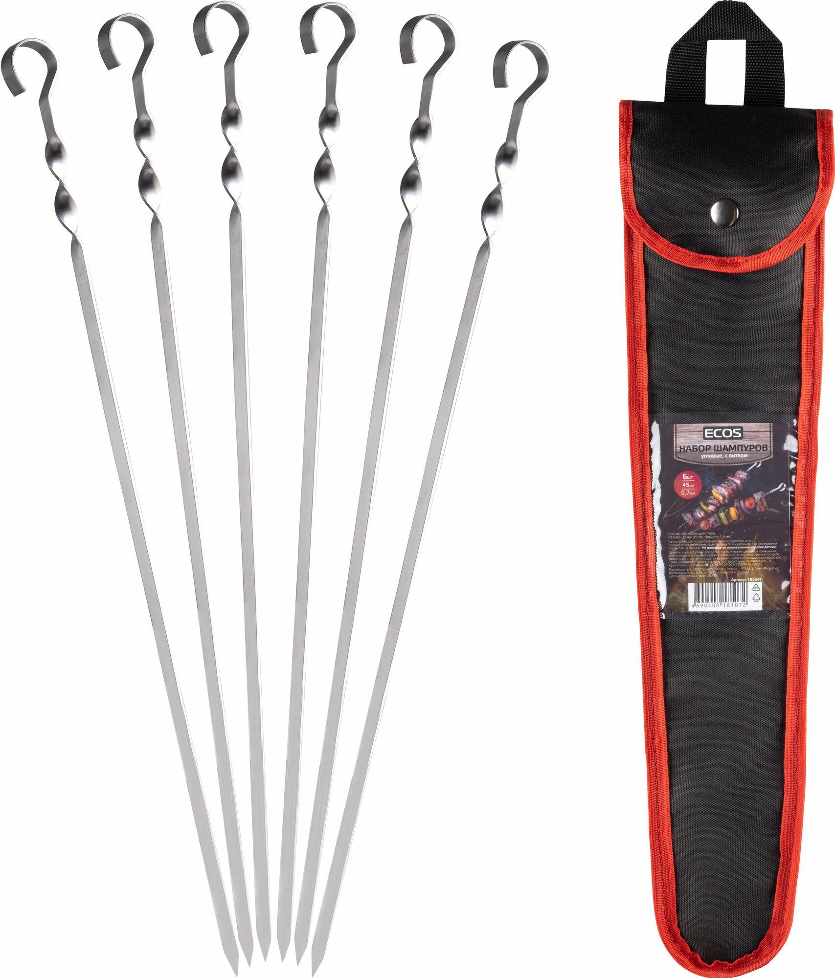 Набор шампуров ECOS 450x10x1,5мм, угловой, с витком, 6шт., в чехле (182541) информация: