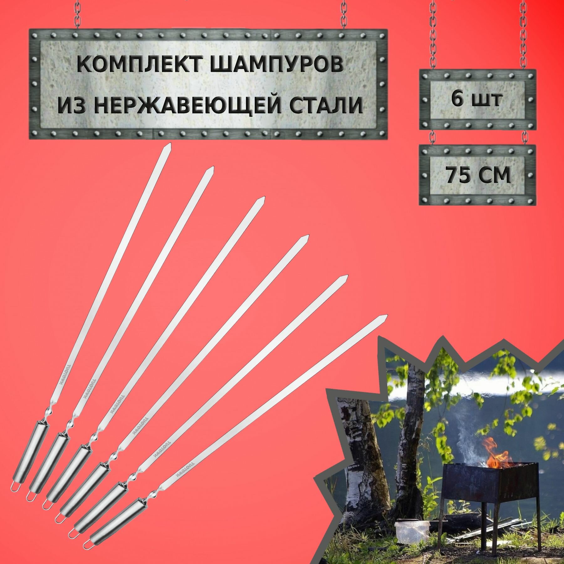 Отзывы на Шампуры TuoTown 6 шт (23021 - 75 см), полая рукоять из нержавейки