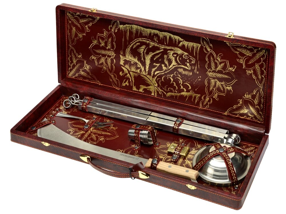 Двойной шампур и нож-вилка со стальной ручкой, Кованые Изделия