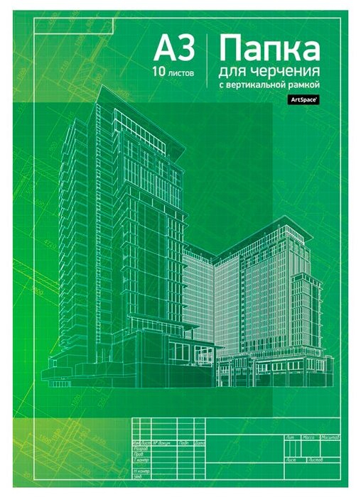 10 цен на Папка для черчения А3, 10л ArtSpace (160 г/кв.м, с вертикальной рамкой) (Пч10А3в_9016)