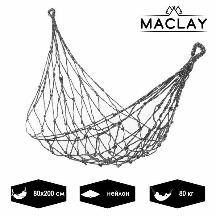10 цен на Гамак подвесной туристический Maclay плетеный, 200х80 см, нагрузка до 80 кг, нейлон, для пикника и похода, для дачи и дома, цвет микс