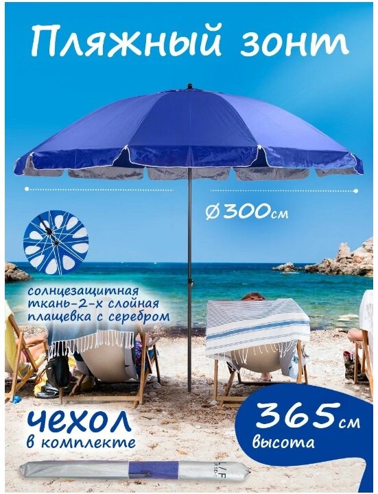 10 цен на Пляжный зонт, 3 м, плащевка (синий), в чехле LR5D-1