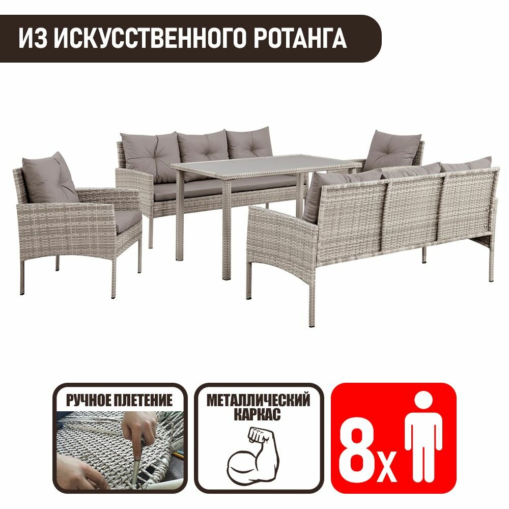 Комплект садовой мебели из искусственного ротанга Фьорд-8 серый информация:
