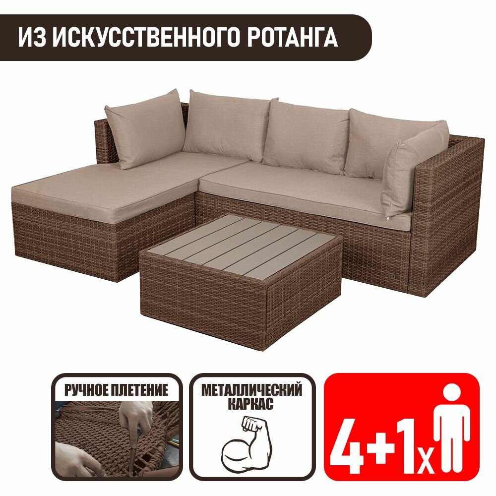 10 цен на Комплект садовой мебели для дачи из ротанга Гардини. Правый угол, капучино