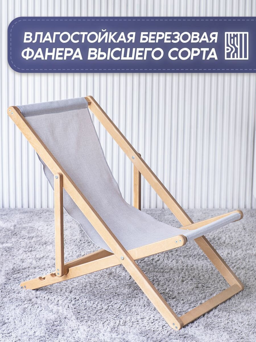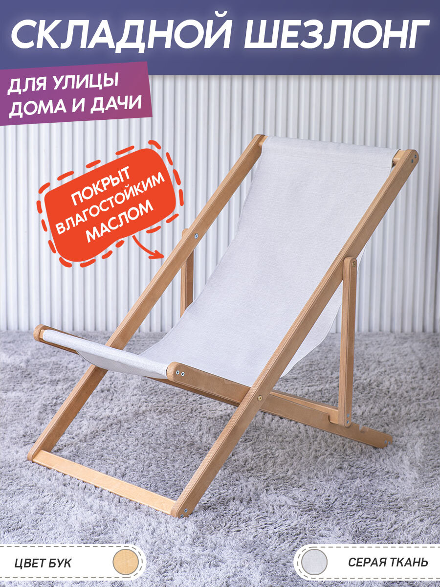 Отзывы на Складной шезлонг для улицы, дома и дачи (бук, серая ткань) / садовое кресло из дерева