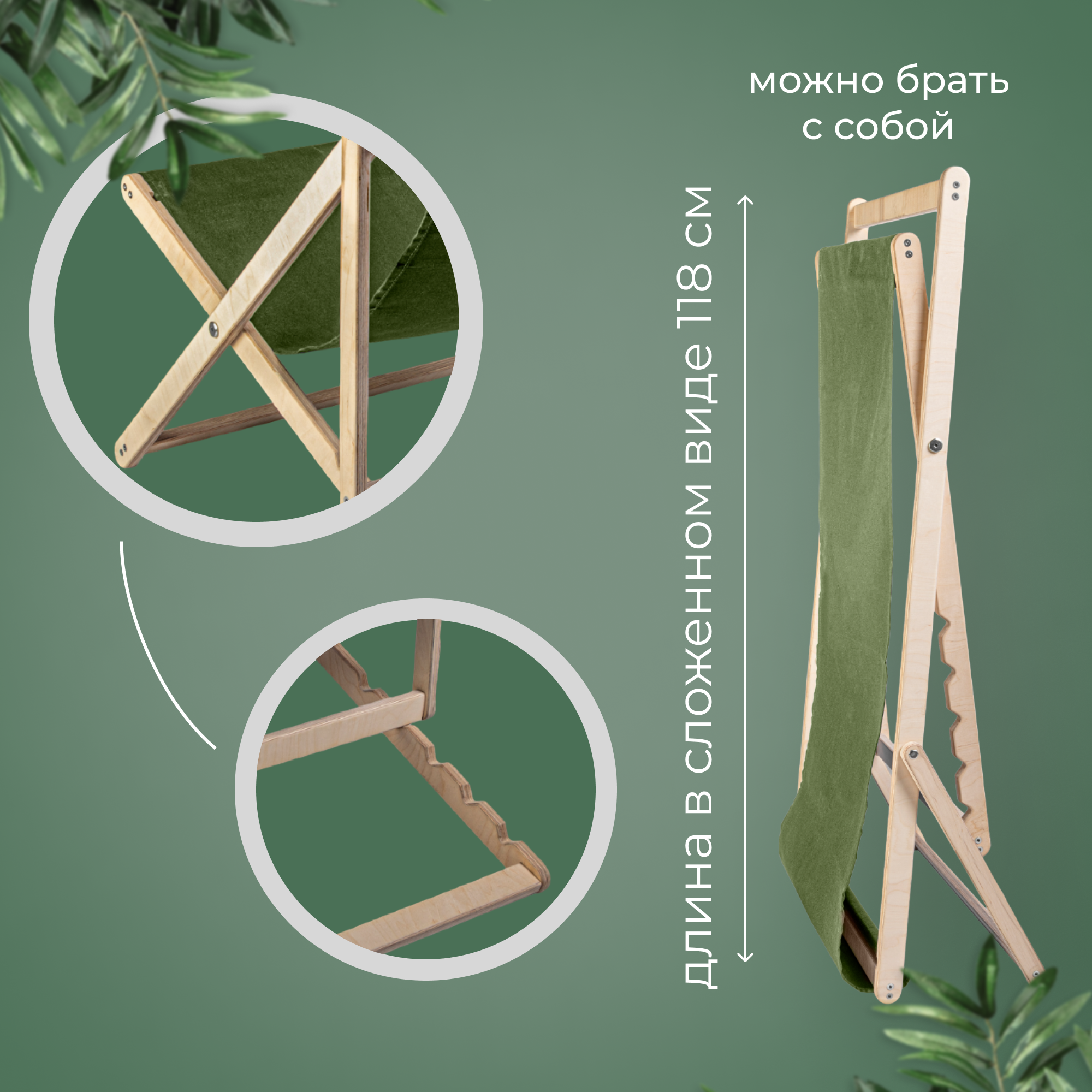 Кресло-шезлонг "Берёзка" без шлифовки с зеленой тканью складной для дома и дачи информация: