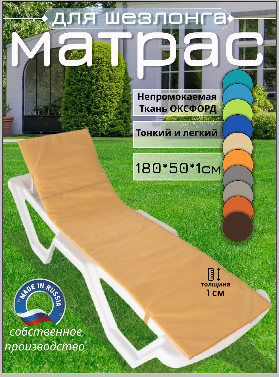 Отзывы на Матрас для шезлонга водонепроницаемый, 180*50*1 см, светло-бежевый, Чудо Кресло, коврик для пляжа, Оксфорд, односекционный