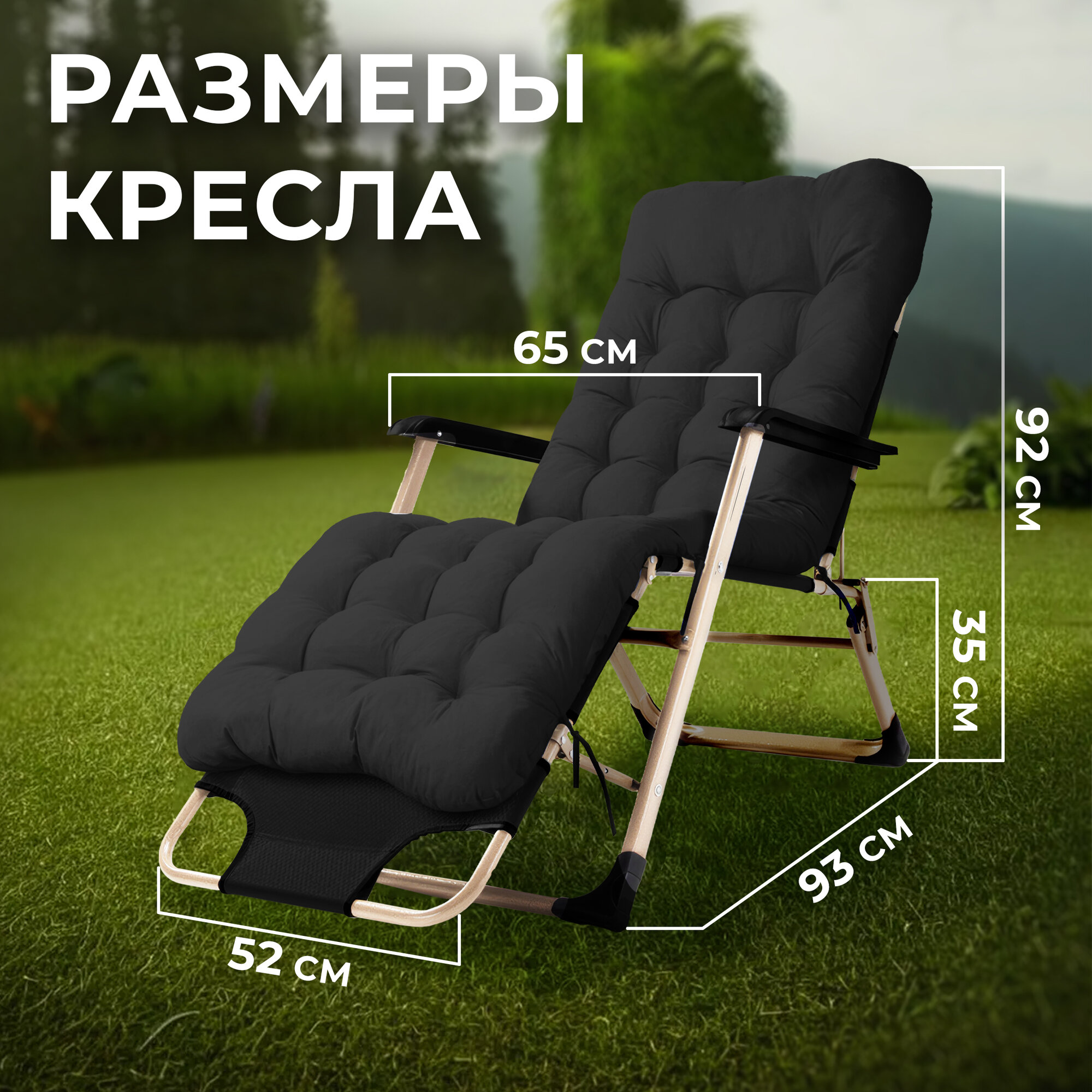 Кресло-шезлонг (раскладушка) складное с матрасом для дачи и сада, черное информация: