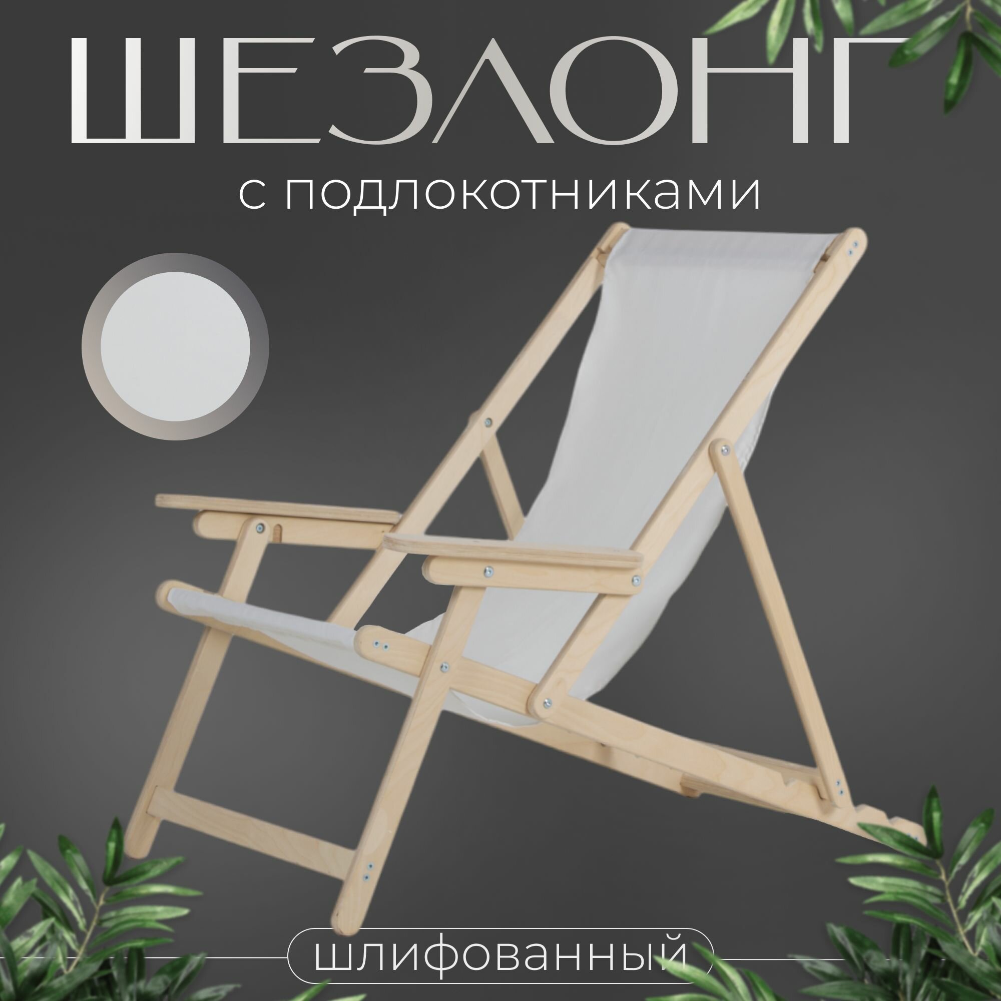 10 цен на Кресло-шезлонг "Элби" с подлокотниками шлифованный с белой тканью для дома и для дачи