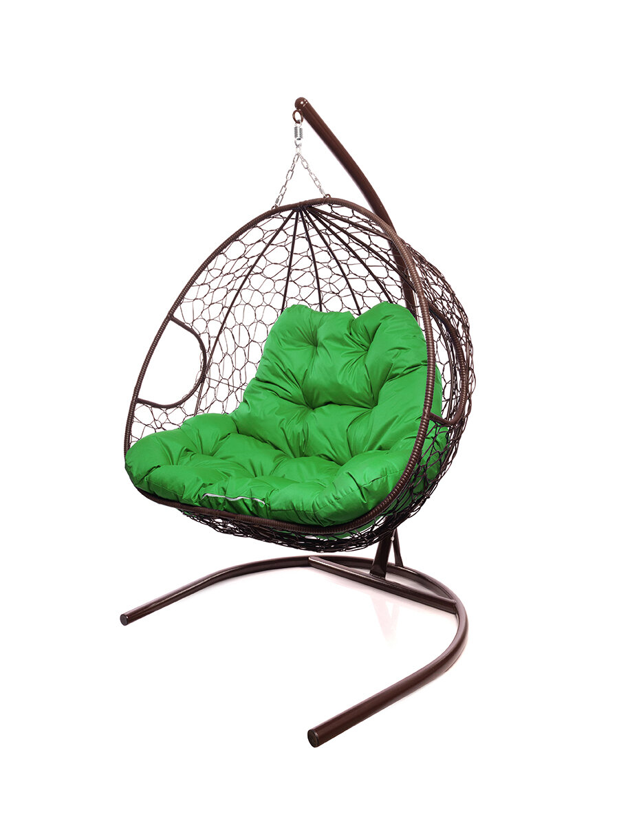 Подвесное кресло из ротанга "Для двоих" коричневое с зеленой подушкой M-GROUP информация: