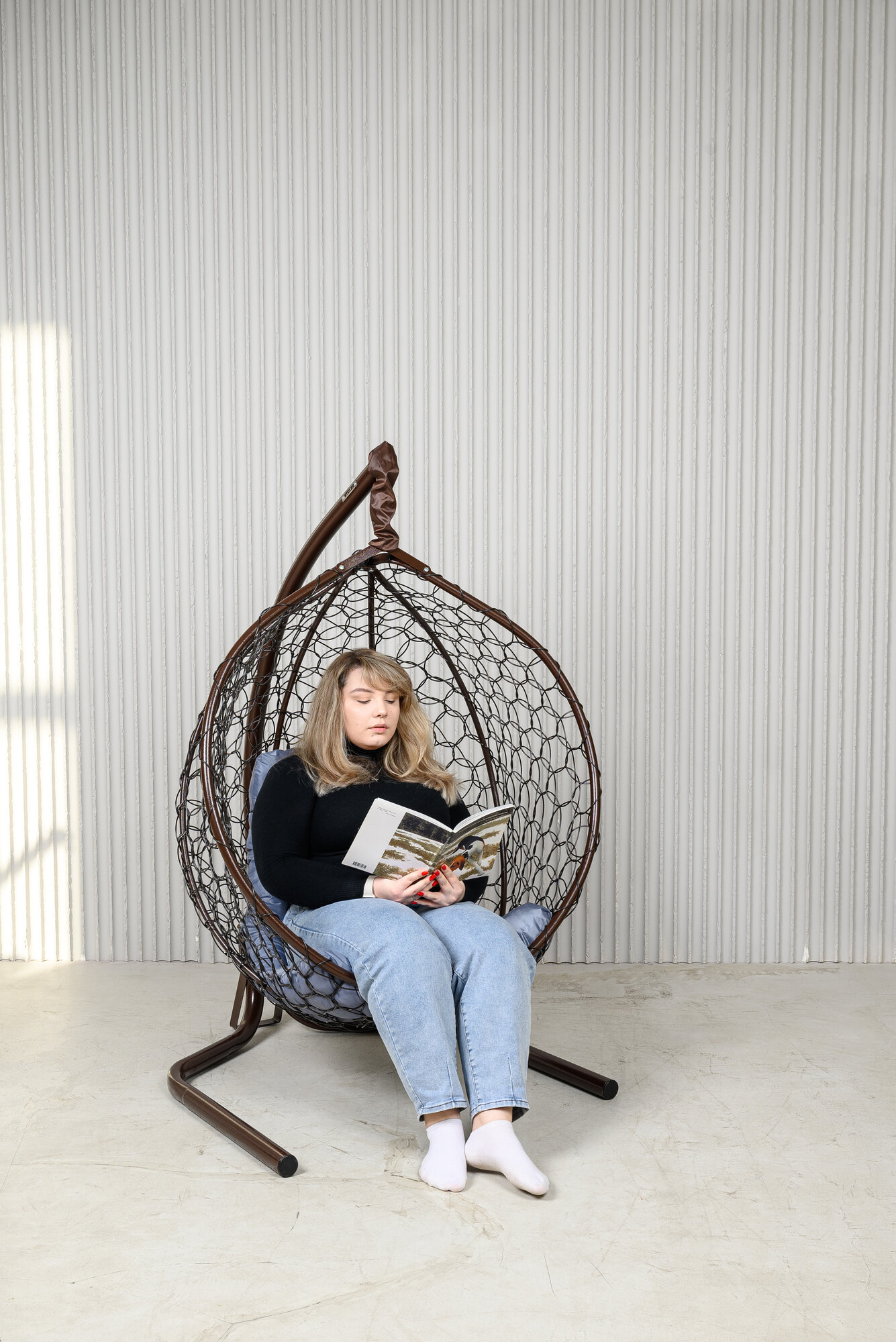 Отзывы на Подвесное кресло кокон STULER Smile Ажур Бабочка 200 Венге 160х63х105 садовое кресло для дачи и сада с серой подушкой трапеция