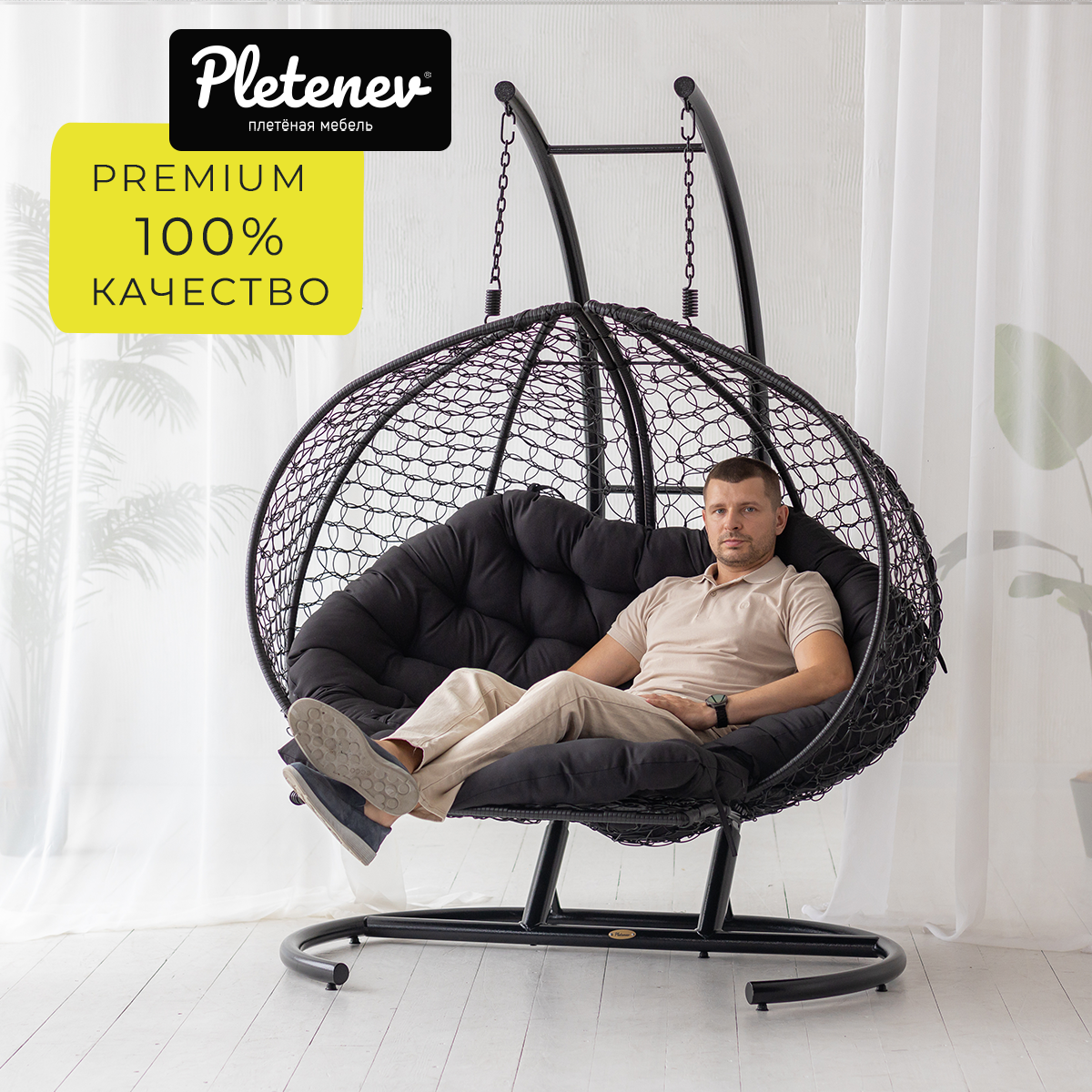 10 цен на Подвесное кресло Pletenev Двухместное Реклайнер Черное с Черной подушкой