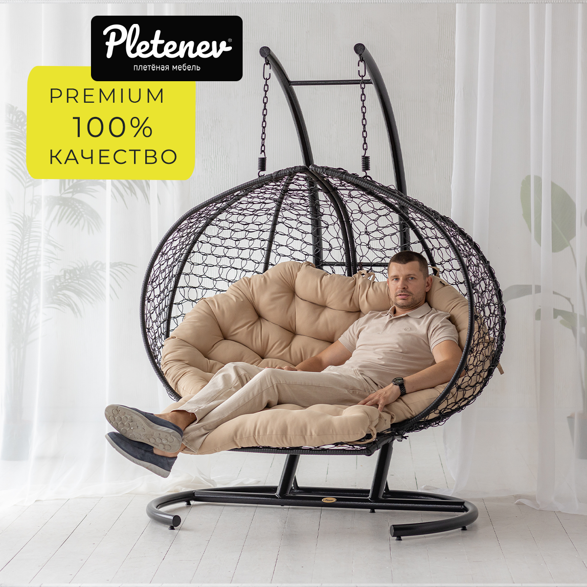 Отзывы на Подвесное кресло Pletenev Двухместное Реклайнер Черное с Темно-бежевой подушкой