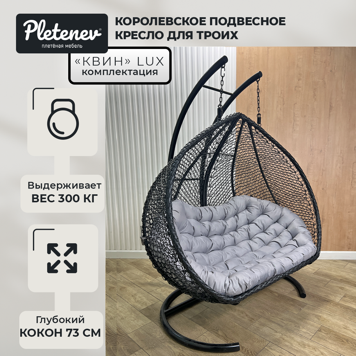 Отзывы на Подвесное кресло Queen трехместное Черное со Светло-серой водоотталкивающей подушкой