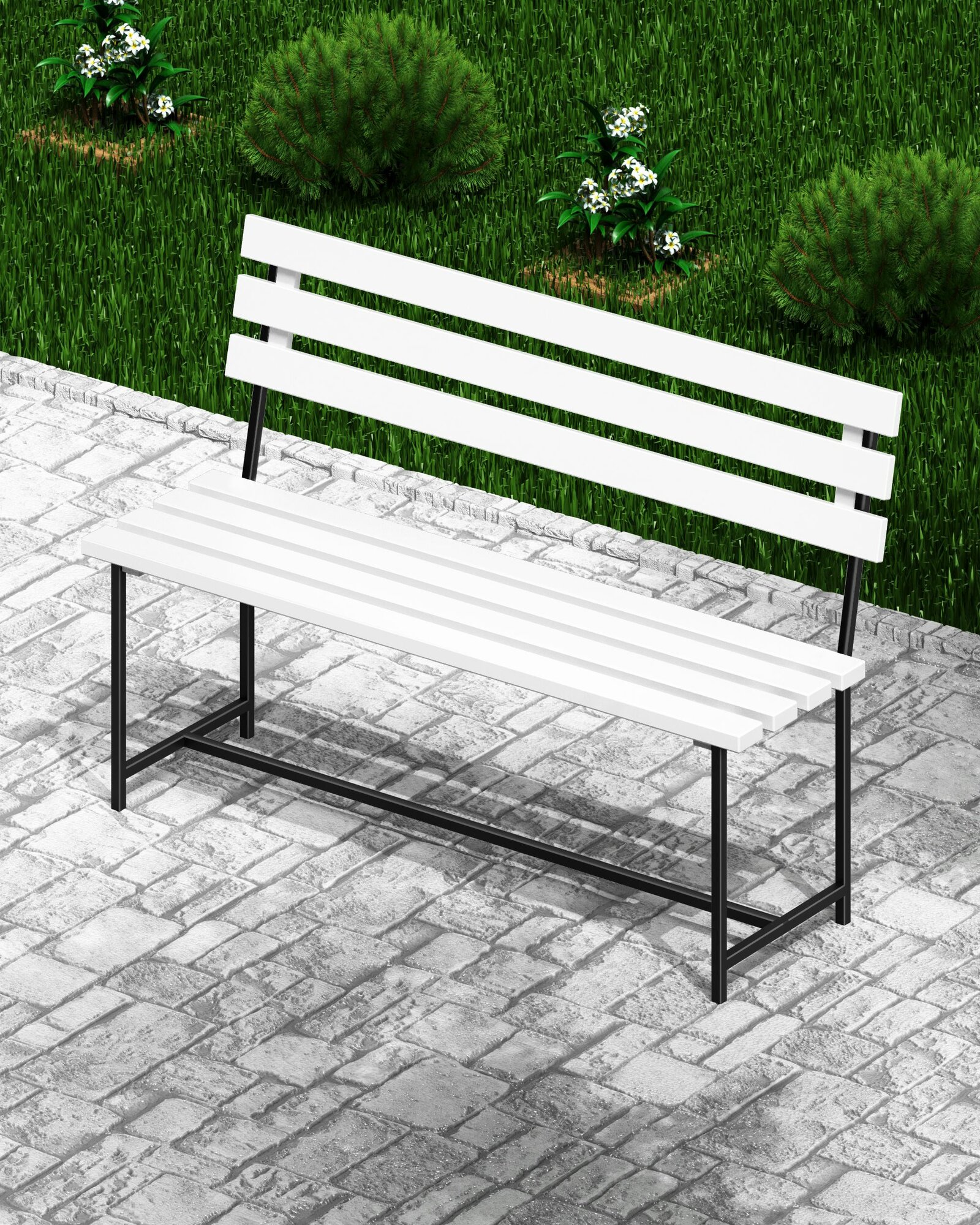 Отзывы на Скамейка садовая Классика с деревянными спинкой и сиденьем белого цвета, лавочка для дачи с металлическим каркасом