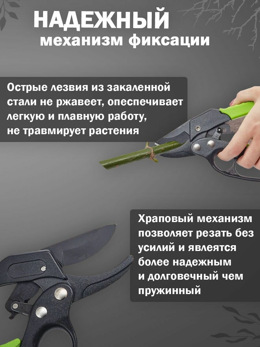 10 цен на Секатор садовый профессиональных с храповым механизмом салатовый