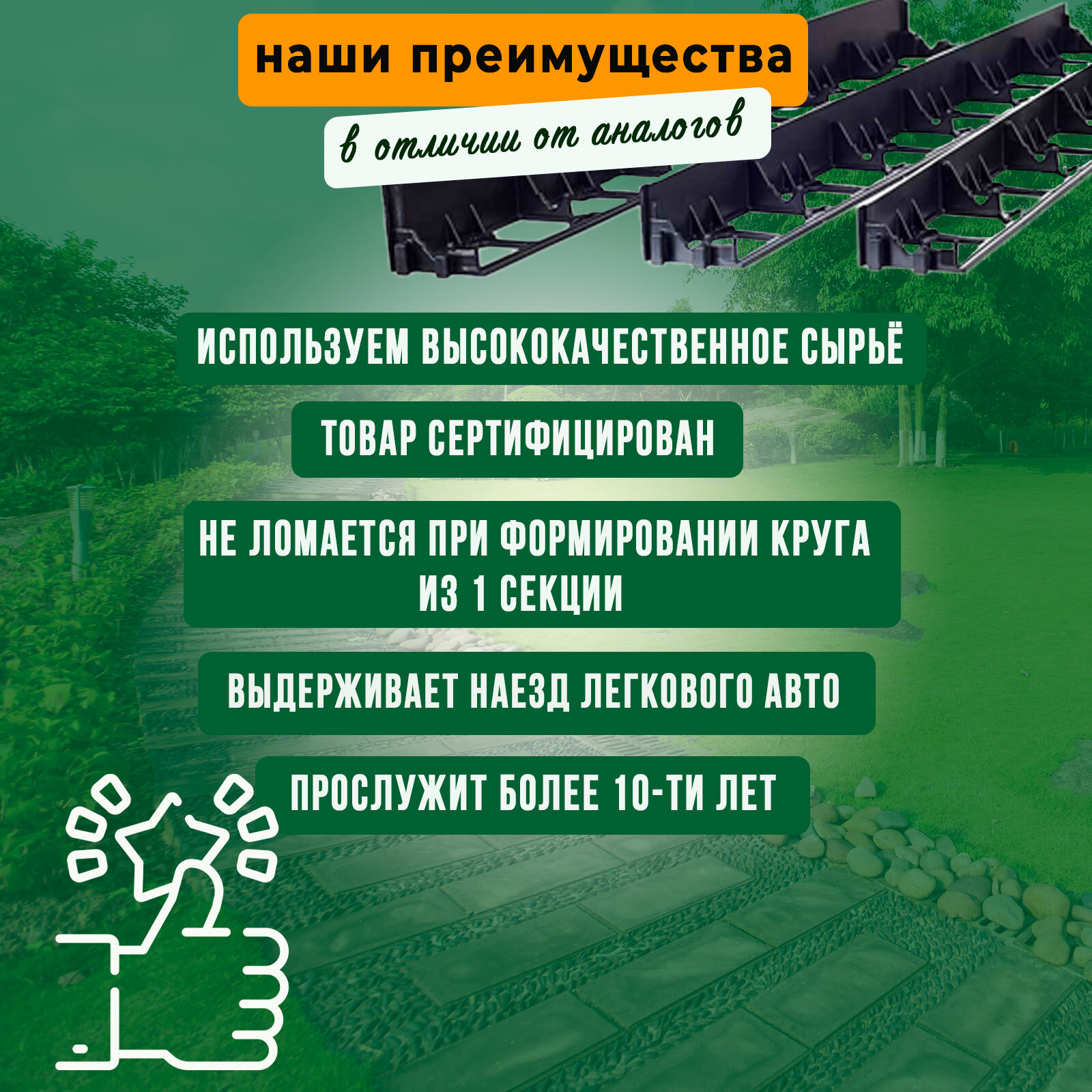 | Подробная комплектация | Бордюр 1000 мм - 12шт., колья 240 мм - 48шт. |