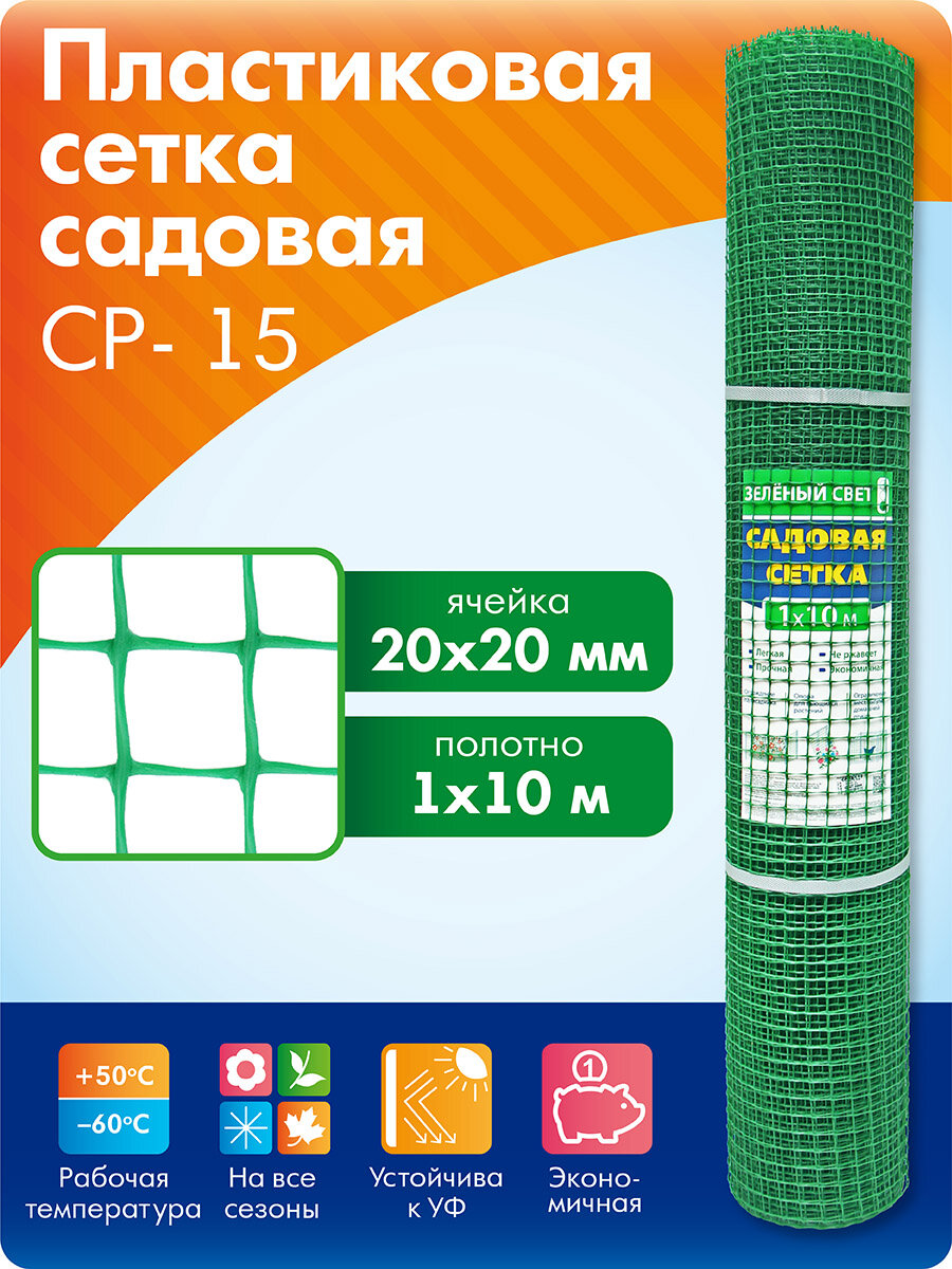 Пластиковая сетка решетка для дачи 1 м х 20 м, зеленая, СР-15/1/20 Протэкт