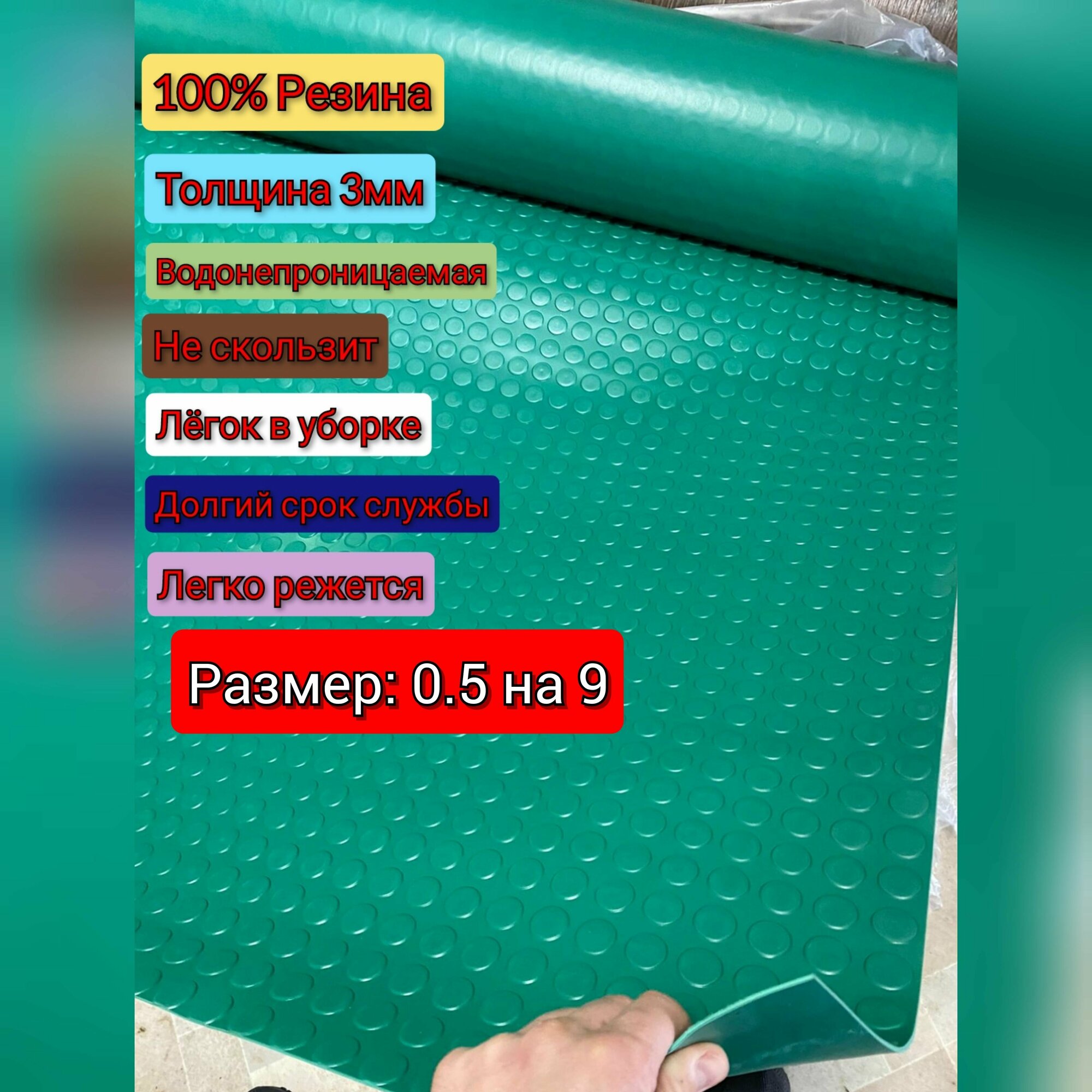 Отзывы на Резиновое покрытие напольное в рулоне 0.5 х 9 (Монета,цвет зелёный) Резиновая дорожка для авто,гаража,ступень,для лифта