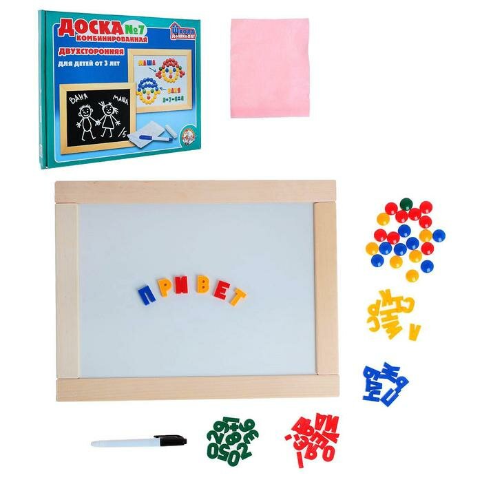 Доска комбинированная №7 (мел, маркер, набор букв, цифр, вкладыши, магнитная мозаика) новая упаковка 907 ₽